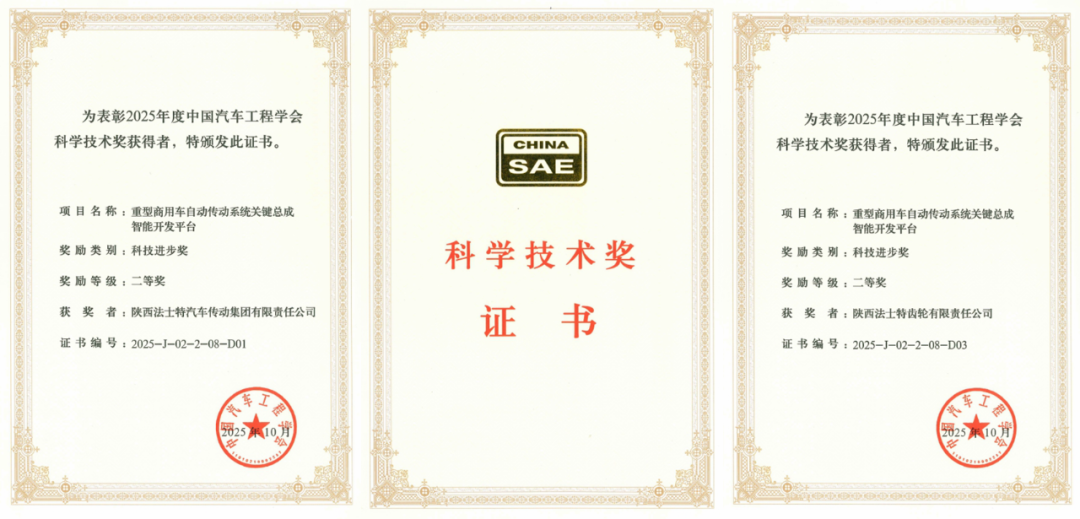 近日,2025年度“中國汽車工程學會科學技術獎”正式揭曉,法士特參與完成的“重型商用車自動傳動系統關鍵總成智能開發平臺”項目榮獲二等獎。作為我國汽車行業規格最高、權威性最強的科技獎項,中國汽車工程學會科技進步獎是首個經國家科技獎勵辦公室登記批準的社會力量承辦獎項,也是唯一覆蓋全國汽車行業的國家級科技獎項...