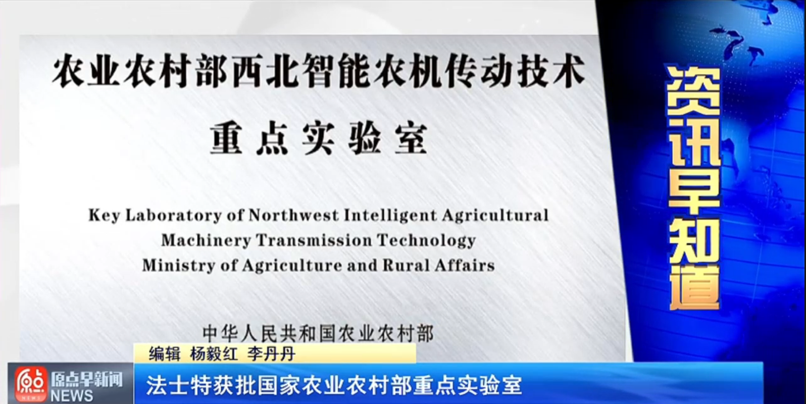 原點(diǎn)新聞:法士特獲批國(guó)家農(nóng)業(yè)農(nóng)村部重點(diǎn)實(shí)驗(yàn)室